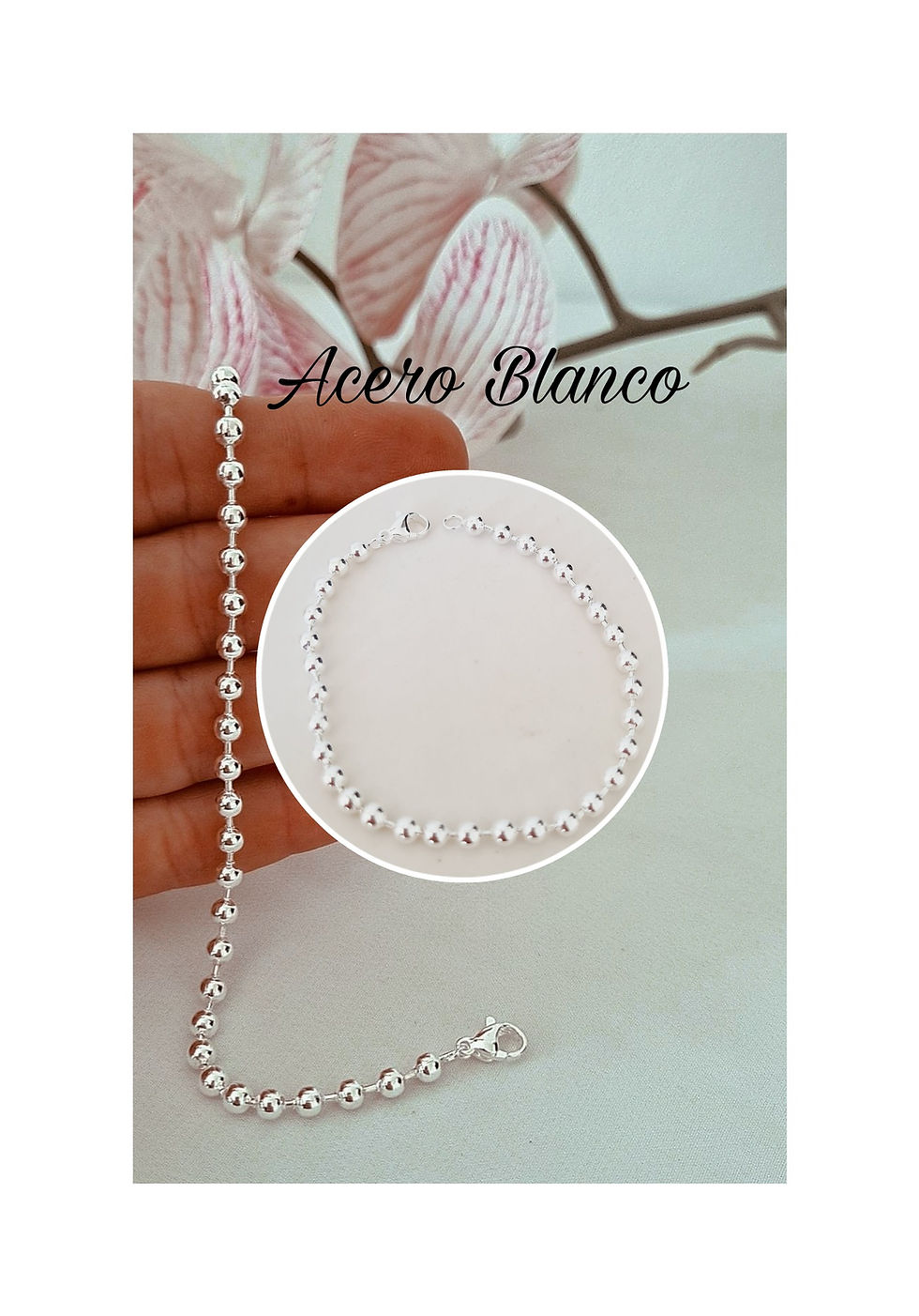 Pulsera Acero Blanco bolitas